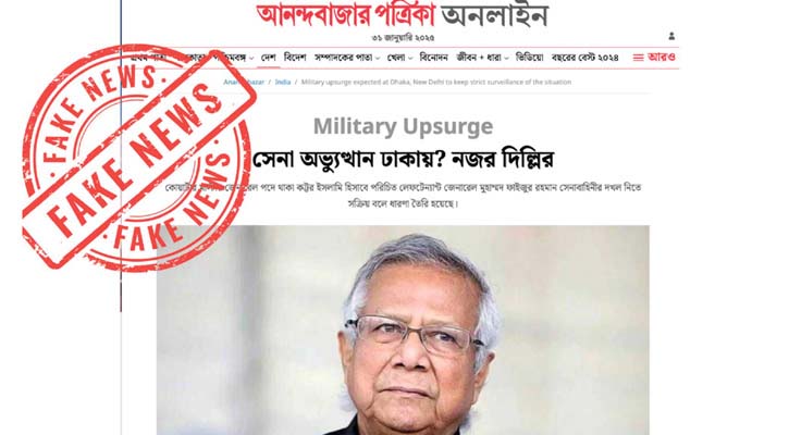 বাংলাদেশে সেনা অভ্যুত্থানের আশঙ্কার কথা উল্লেখ করে ভারতীয় সংবাদমাধ্যম আনন্দবাজার অনলাইনে যে সংবাদ প্রকাশিত হয়েছে তা ভিত্তিহীন বলে জানিয়েছে