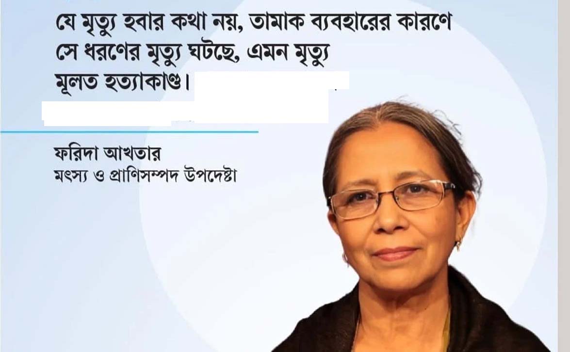 মৎস্য ও প্রাণিসম্পদ উপদেষ্টা ফরিদা আখতার বলেছেন, যে মৃত্যু হবার কথা নয়, তামাক ব্যবহারের কারণে সে ধরণের মৃত্যু ঘটছে,